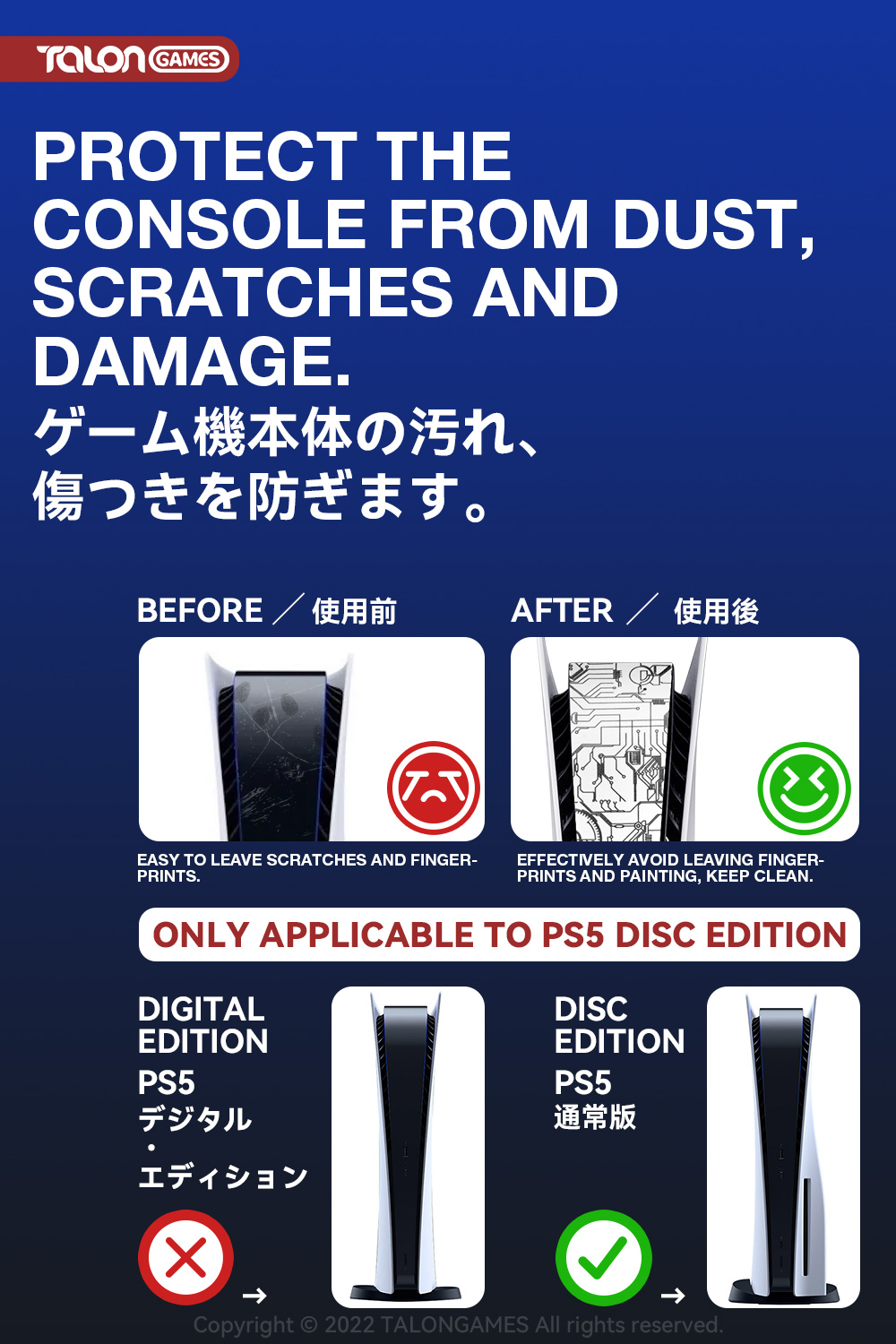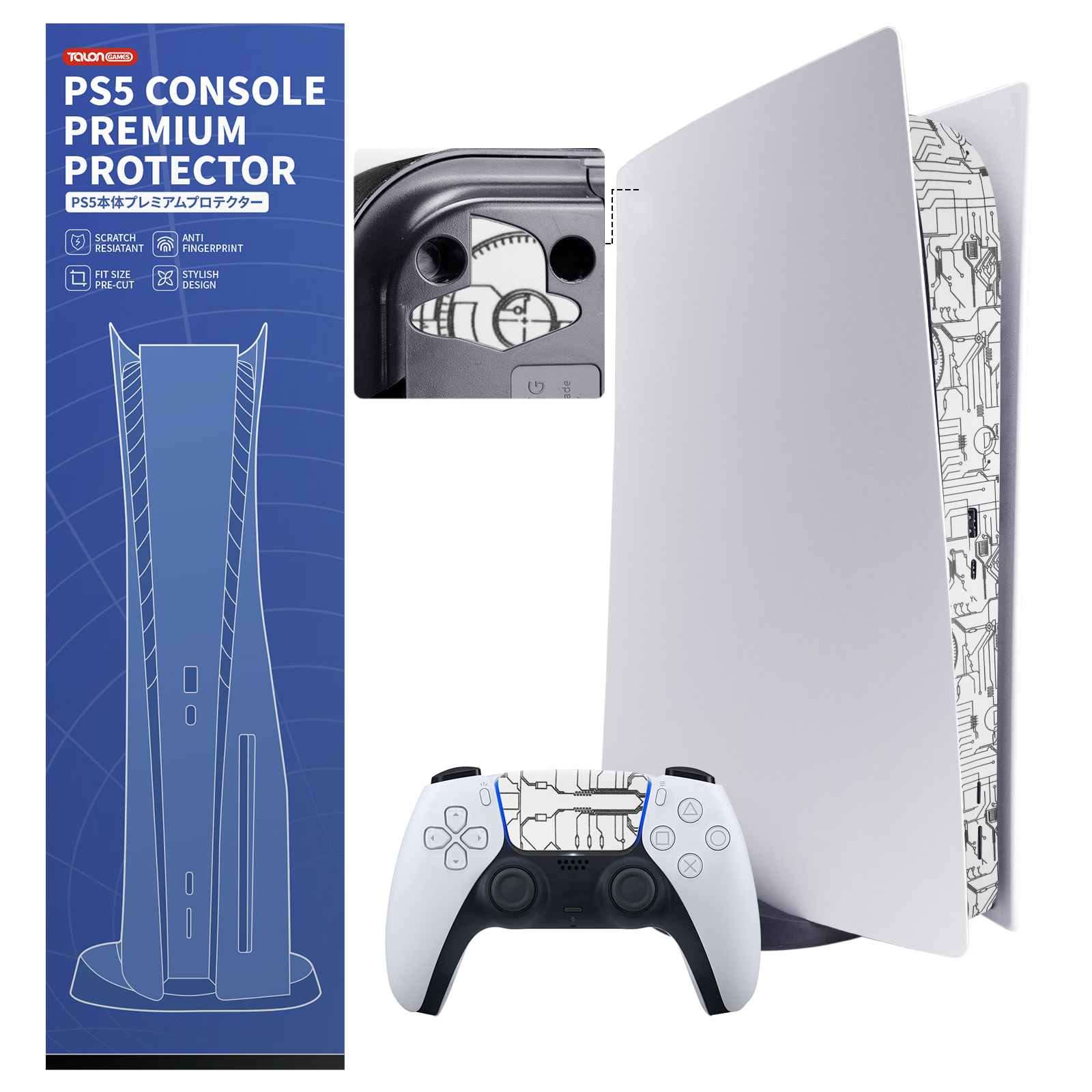 TALONGAMES PS5用本体保護フィルム (電子回路 ホワイト)